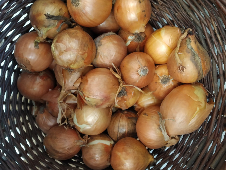 Ellenőrzött BIO termesztésben engedélyezett növényvédelem alkalmazásával termelt vöröshagyma.