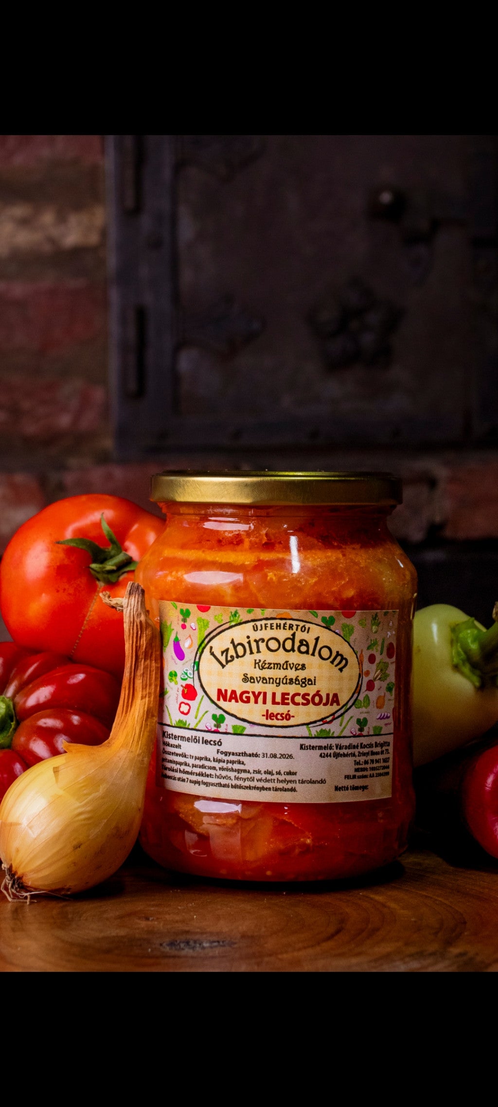 Ahogy a sparhelten rotyogott egykoron... Ez nem egyszerűen lecsó – ez Nagyi lecsója. Egy íz, ami visszavisz a gyerekkorba, amikor a ház még nyitva állt, a kertből frissen szedett paprika illata betöltötte a konyhát, és a sparhelt szélén csendesen rotyogott az élet. Háromféle paprikából készítjük, ahogyan a nagyanyánk is tette: hagyományos tv-paprika, zamatos pritamin és húsos kápiapaprika kerül bele. Mellé finom hagyma, érett paradicsom, és az egész lelke: egy kanál zsír, ahogy az régen is dukált. Tartósítószert nem használunk – az íz tisztasága a természet és a gondos elkészítés ajándéka. „Nagyi lecsója” nemcsak étel, hanem emlék. Egy falat régi nyár, egy kanalazásnyi szeretet, amiben benne van a múlt melege, az otthon íze, és a nagymama gondoskodása. Tálald magában, tojással, kolbásszal, kenyérrel vagy ahogy a szíved diktál – egy biztos: nem csak jóllaksz, de hazaérkezel. „Mert vannak ételek, amik nem múlnak el – csak továbbadják a szeretetet.”