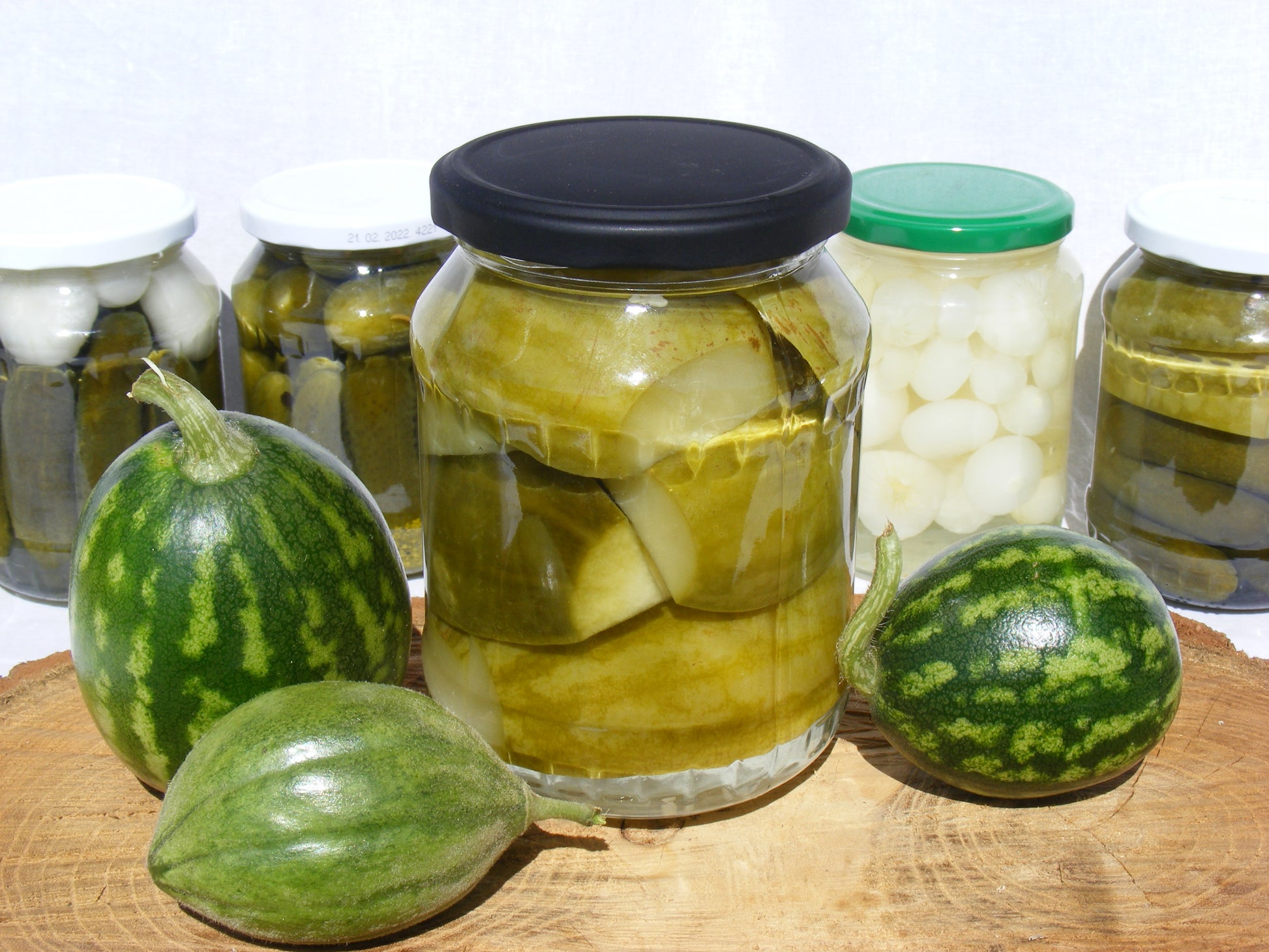 Hagyományosan, házi befőzéssel készített savanyúság a kertben termelt görög és sárgadinnyéből.