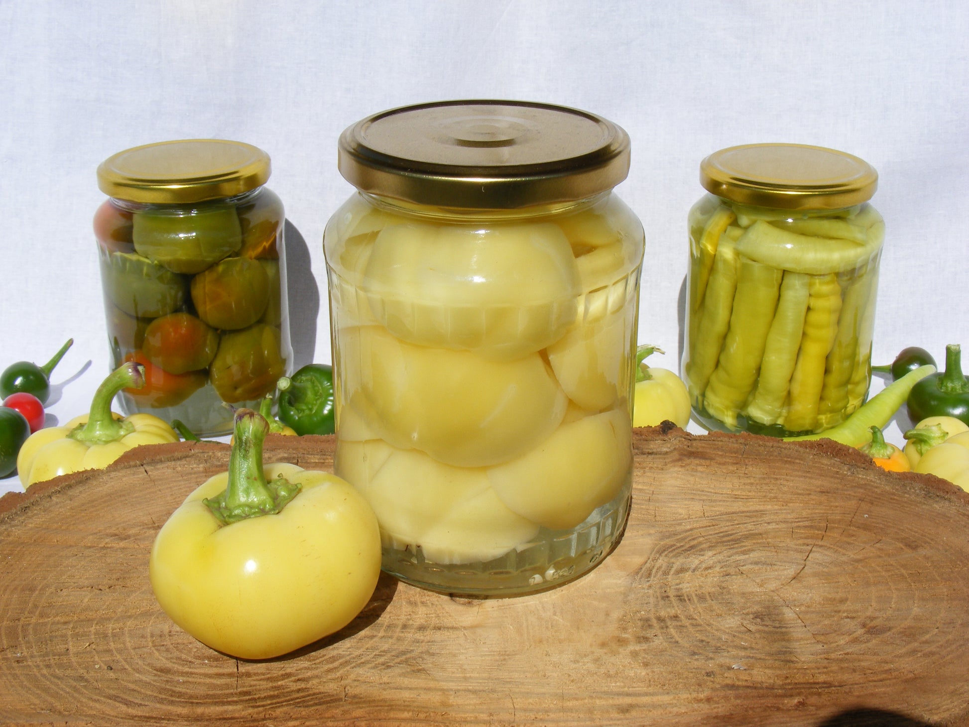 A frissen szedett paprikát alapos mosás után kicsumázom, kettévágom a helykihasználás miatt, majd az üvegbe rakom. Felöntőlével töltöm meg az üvegeket, amibe só, cukor, ecet, borkén, na-benzoát kerül, hűvös helyen két hónap pihenés után fogyasztható.