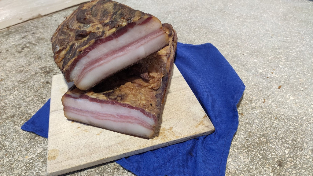 Kistermelői hagyományos ízesítésű házi készítésű füstölt kolozsvári szalonna.