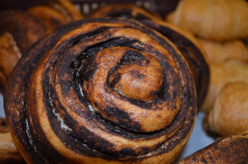 Teljes kiőrlésű liszt hozzáadásával készült leveles kakaós csiga.
