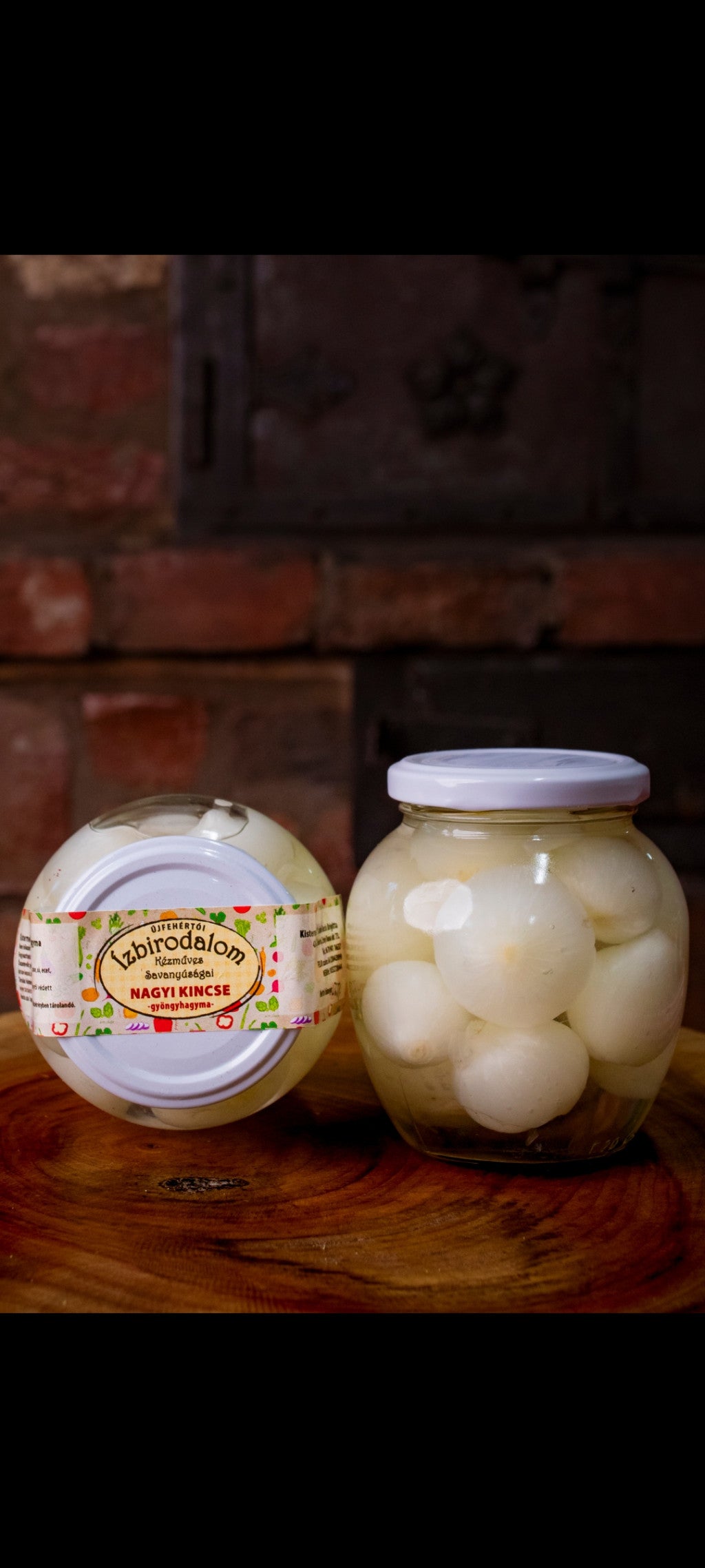 Savanyított gyöngyhagyma „Apró, de minden falatban benne van a világ.” Ezek a pici, hófehér gyöngyszemek nem csupán savanyúságok – emlékek. A nagymamák csendes türelme, az esti pucolások finom neszei, a lavór fölött eltöltött percek íze. A Nagyi Kincse nem harsány, nem hivalkodó – de minden falatja egy kis patakcsobbanás a múltból. Kézzel válogatva, tisztán, szeretettel eltéve, ahogy az otthon tanított bennünket: ecettel, sóval, cukorral, fűszerekkel – és egy leheletnyi tartósítóval, hogy roppanós maradjon akkor is, amikor már messze jár az ősz. Sültekhez, rakott ételekhez, disznótoros mellé, de akár csak egy falat kenyér mellé is illik – finoman kísér, nem tolakodik. A Nagyi Kincse nem más, mint üvegbe zárt türelem, egy kis kerti emlék, egy szemernyi múlt, amit ma is jóízűen továbbadhatunk.