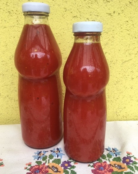 A sűrűre főzött paradicsomlét befőző automatában készítve.