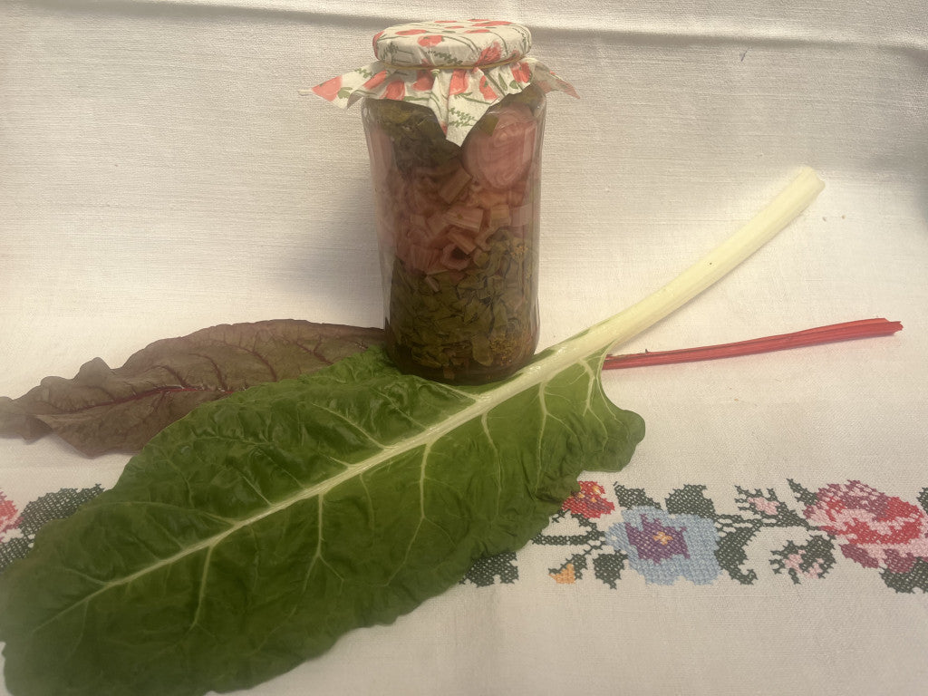 mángold,kapor,zöldséglevél,meggylevél,hagyma,só,ecet